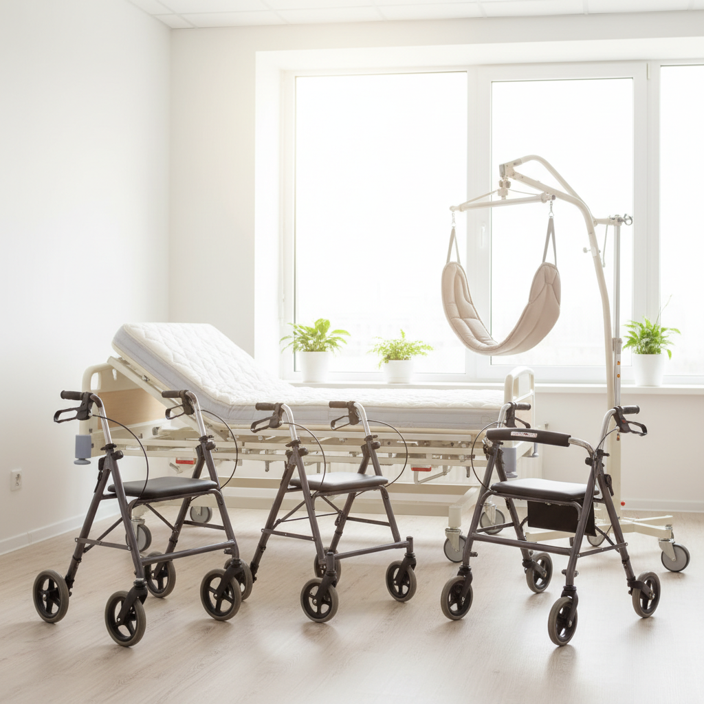 Balkoniki, chodziki, Materace przeciwodleżynowe, Podnośniki pacjenta