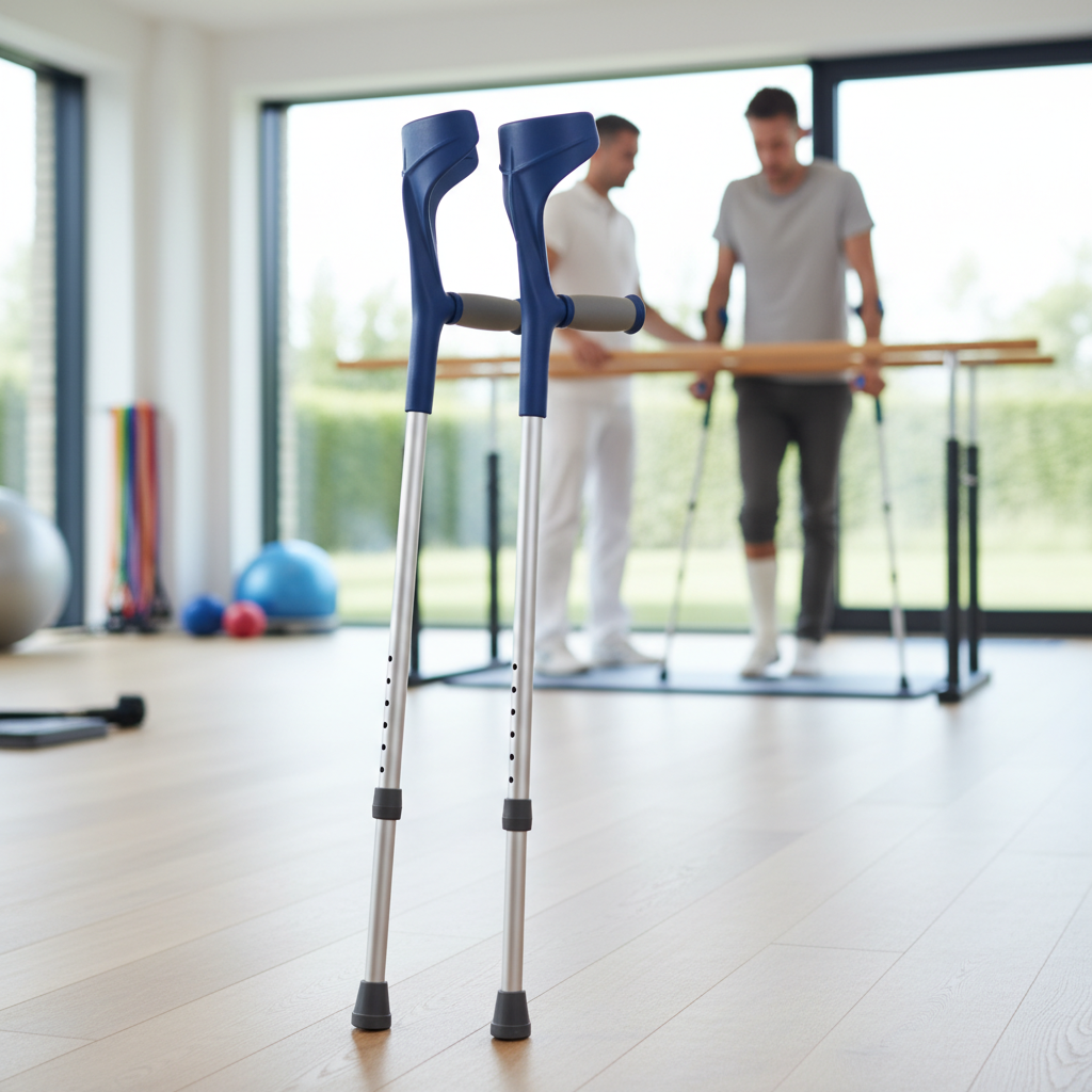 Pomoc w poruszaniu się w trakcie rehabilitacji po urazach kończyn dolnych. Lekkie i wytrzymałe.